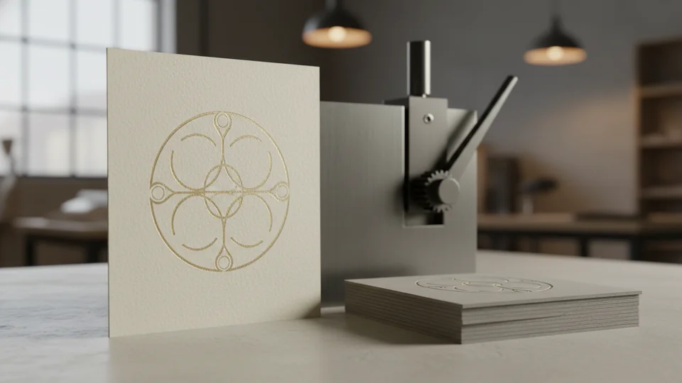 Это вдавленный рельеф без блеска, который даёт благородную глубину на бумаге и картоне. Любим за минимализм и аккуратную тактильность.